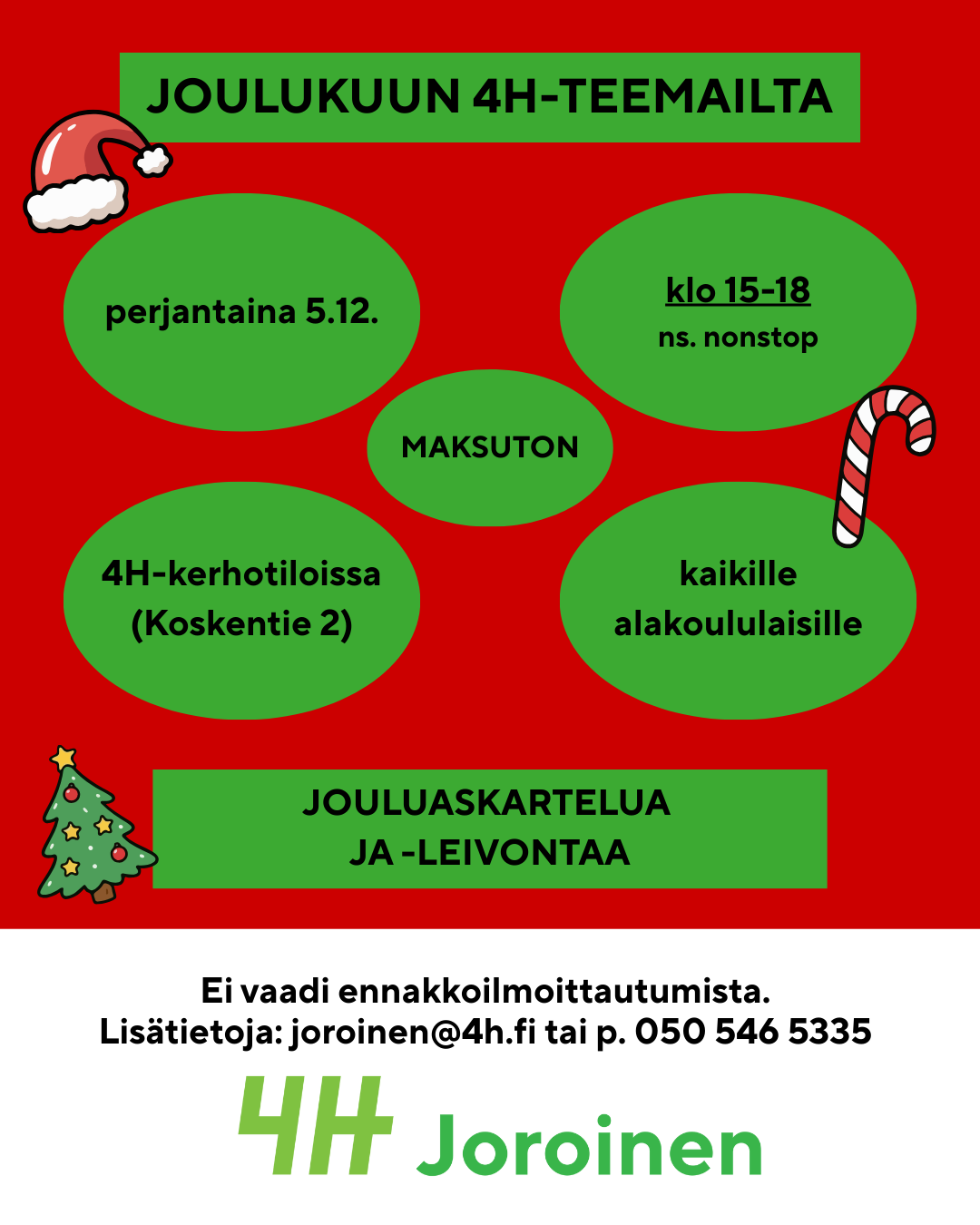 Lisätietoja: Eveliina Kautto, p. 050 546 5335 tai joroinen@4h.fi.